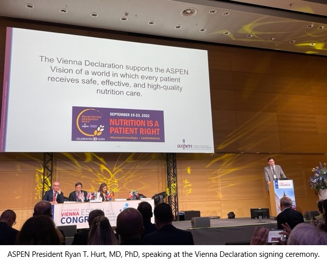 The International Working Group for Patients’ Rights to Nutritional Care, of which ASPEN is a member, presented its position paper on nutritional care as a human right that is intrinsically linked to the right to food and the right to health. The paper discusses the importance of a human rights-based approach to clinical nutrition and to developing a moral, political, and legal focus for nutrition care. Watch the short video on the right to learn more.